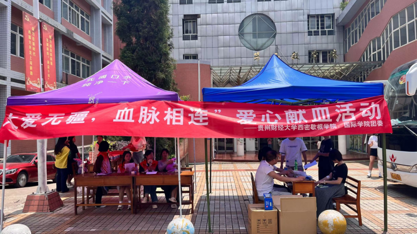 (本网讯:西密歇根学院 方天悦 报道|摄影 张书凡、冯浩然)为纪念“世界红十字日”,进一步弘扬无私奉献的志愿服务精神,2023年5月4日至5月6日,西密歇根学院在鹿冲关校区二教门口举办“大爱无疆,血脉相连”爱心献血活动。